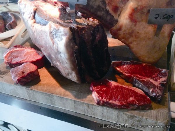 谷饲牛肉脂肪含量较高,脂肪均匀分布于肌肉组织里,口感肥美多汁,肉质嫩滑,风味则偏向于厚重,香味更多地来自于油脂的作用。以澳洲、美国为代表的新世界国家多食用谷饲的牛肉,配以果香浓郁、恰到好处地平衡了牛排的油脂与香气、单宁结实的葡萄酒,不仅可以去除牛肉脂肪带来的油腻感,同时还使得牛肉的口感更加鲜美。