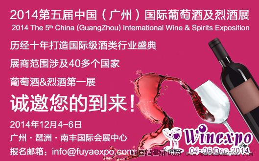 文章来源中国酒业新闻网 由中国食品土畜进出口商会与广州福亚展览有限公司共同举办的2014第五届中国(广州)国际葡萄酒及烈酒展览会,将于2014年12月4日-6日(9:00~16:30)在广州·琶洲·南丰国际会展中心(地铁新港东路F出口直走100米)隆重举行!届时将同期举办2014第十届中国(广州)国际食品饮料展与2014第五届广州食品机械与包装展览会。