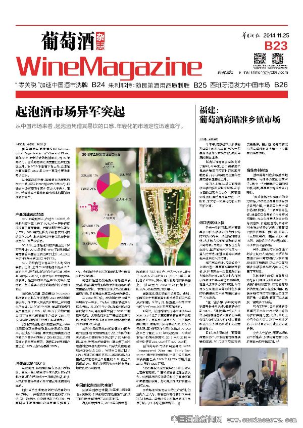 国际葡萄酒与烈酒调查机构IWSR(International Wine and Spirit Research)提供的数据显示,中国市场的起泡酒消费量已由2009年的370万瓶升至2013年的1300万瓶。