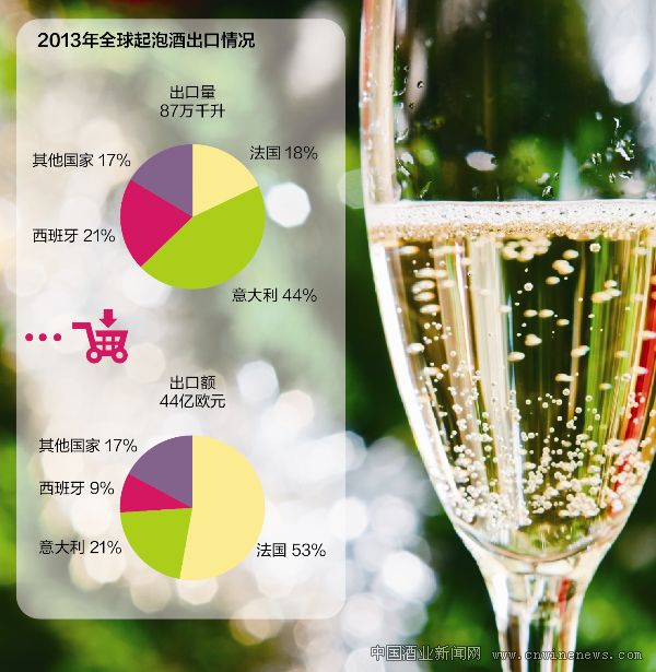 海关的数据显示,2013年我国共进口起泡酒8,702,410升,与去年相比,增长了37.78%;进口额为64,783.218美元,同比增长6.75%。其中,意大利起泡酒后来居上,进口量与2012年相比增长了88.68%,超越法国,位列第一。