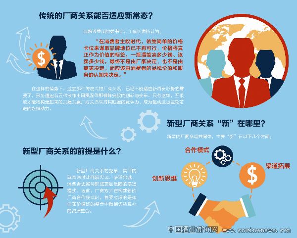 早在2007年,中国酒业中的厂商关系有了本质性的变革,使得酒业对于厂商关系的看法有了更新的认识。这种变革表现在持续地发生了如五粮液的“五粮液品牌运营商顾问团”、贵州茅台的俱乐部模式、丰谷酒业的“千万创业基金工程计划”,华泽集团(金六福企业)旗下的华致酒业的创新合作模式等最为典型的厂商合作模式。