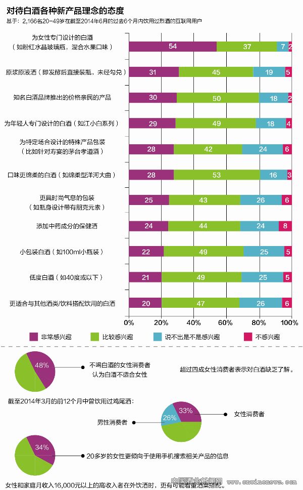 重点分析:与威士忌形象类似,白酒是成熟经典、以男性为主的烈酒。但白酒可以通过强调混调性或者添加新口味,以摆脱男性酒的形象。