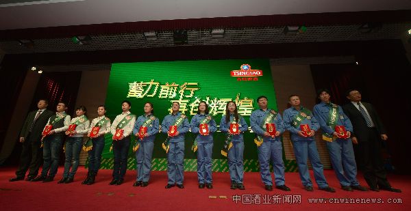 站在聚光灯下,带着整齐鲜亮的绶带,从颁奖嘉宾手里接过奖杯和荣誉证书,接受全场潮水般掌声……与啤酒生产线机器设备和瓶瓶罐罐打了30年交道的郝全青,成为工厂和乃至整个公司的“明星”。