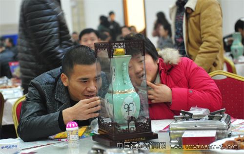 下午5点,三峡物流园的商户陆续赶到活动现场。入座后,商户们对摆在桌上的“关公坊姓氏定制酒”产生了浓厚的兴趣,拿起宣传册仔细阅读,一位小伙子迫不及待地打开了定制酒,想要一尝为先。还有不少商户被定制酒独特的造型设计所吸引,掏出手机与定制酒合影并转发朋友圈、QQ空间。