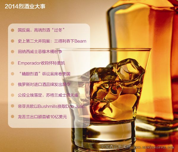 2014对于烈酒行业可谓命运多舛的一年,大规模并购、金融困境、政治动荡和令人震惊的法律案件充斥着国际烈酒业。在这些大事中,持续占据头条位置的是中国限制奢侈消费对于酒类的影响,尤其对于帝亚吉欧(Diageo)、保乐力加(Pernod Ricard)和人头马君度(Rémy Cointreau)等酒饮巨头所带来的打击。让我们回顾一下这一年发生的大事件,或许大家能从中一窥2015烈酒行业的发展前景。
