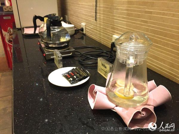 餐厅没有酒水,只提供白开水、柠檬水与散装的苹果汁。