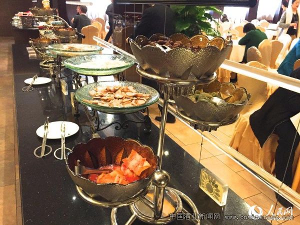 午餐提供10个热菜,5种主食、一些水果和点心。