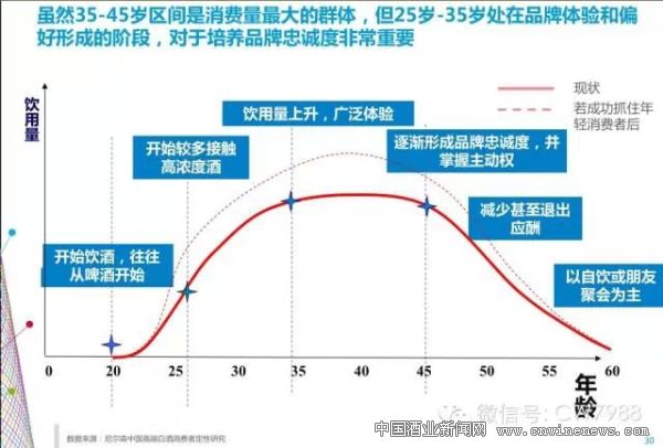 尼尔森的研究显示,35-45岁区间依旧是白酒消费量最大的群体,尤其是具备消费能力的中产阶级。