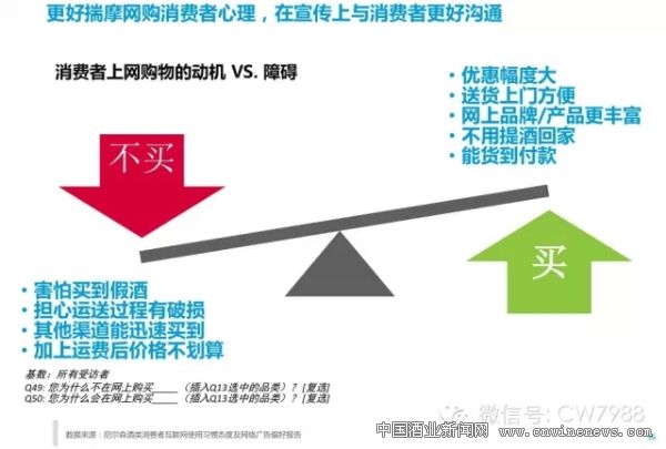 同时充分利用网上优惠幅度大、送货上门方便、网上品牌/产品选择更丰富、线上支付等优势,有效地将‘线上和线下’结合在一起,做好消费者体验和互动,那么互联网平台将会成为白酒企业新的蓄水池,未来潜力巨大,”范奕瑾说。