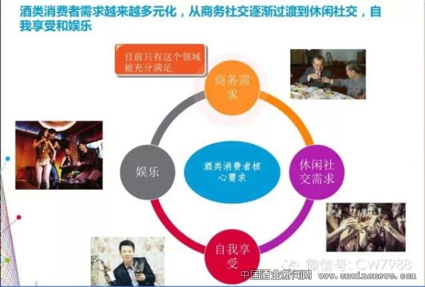 如将围绕酒类的需求分成四种,即商务需求、休闲社交需求、自我享受和娱乐,尼尔森的研究显示,针对白酒而言,目前只有其商务需求得以被充分满足,而其他需求并没有得到有效的延展。