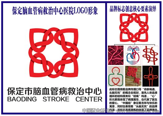 保定脑血管病救治中心医院的LOGO内涵取意东方,而人们又从东方意境中看到了国际化的设计手法与技巧,传统与现代结合产生了新的美学视觉。通过该品牌标志创作思路的解读,我们得以管中窥豹的了解到一些杨大中老师的创意功力,他能游刃有余的把深厚的思想力转化为艺术上的表现力;并且所创意的设计作品还能让人感觉到自然贴切, 毫不牵强,具有佳作天成的神韵。