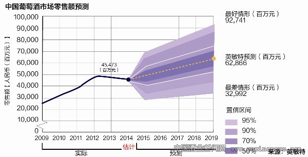 市场仍处于转型阶段 受严控“三公消费”、禁酒令等政策的影响,进口葡萄酒需求大幅下滑导致2014年上半年葡萄酒每升均价出现下滑。平均而言,2013年葡萄酒零售价下降7%左右。预计2014年零售价将会出现进一步下滑,跌至4%,零售价为49.3元/升。