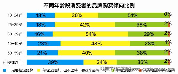 该项消费者满意度调查报告显示:从市场消费特征看,年龄偏大的被访者满意度相对较高,而年轻的被访者对香味、口味和口感的个性化需求更多,因此略显挑剔。30岁以下的消费者不容易产生明显的品牌购买倾向;25岁以下的消费者(90后)中有半数之多的人在购买时没有固定的品牌倾向,这两个比例均高于其他年龄段人群;随着年龄的增长,超过40岁的人群中,购买时只钟爱并选择单一品牌啤酒的比例上升,60岁或以上的消费者中指定啤酒品牌的比例最高。