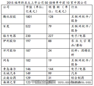 福布斯刚刚公布了“2015年亚太地区最佳上市公司50强”,洋河股份作为唯一一家中国白酒企业上榜,位列亚太地区第12位、中国上市公司第5位,被福布斯评为“业绩极佳、具有企业家精神”的亚太地区最优秀公司之一。