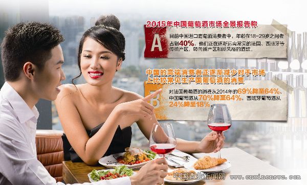 这份《2015年中国葡萄酒市场全景报告(China Wine Market Landscape Report)》称,目前中国进口葡萄酒消费者中,年龄在18~29岁之间者占到40%,他们正在逐渐远离常见的法国、西班牙等传统产区,转向新产区和新风格的酒款。