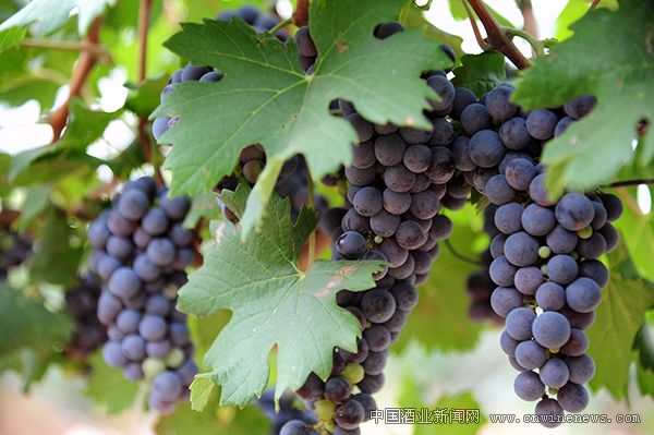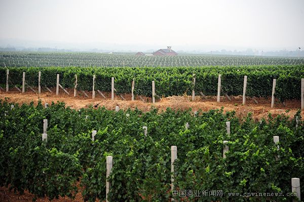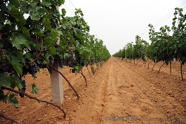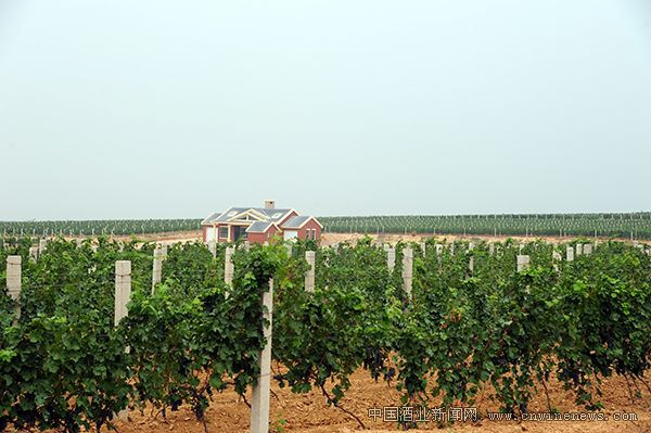 图1:张裕朱桥葡萄基地位于莱州市朱桥镇东南部,站在基地的高处环顾四周,目光所及是8000亩连绵不绝的葡萄绿海纵横交错,这里之前是一片荒山,张裕公司从当地农民手里进行土地流转后,经平整,种上了适应贫瘠土地的酿酒葡萄,变废为宝。这里位于北纬37.5度附近,与法国著名葡萄酒产区波尔多地区处于同一纬度,自然条件十分适合种植优质酿酒葡萄,已经成为国内单体连片面积最大的自营酿酒葡萄种植园。