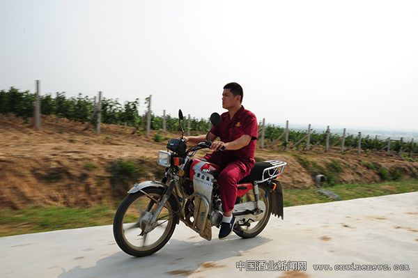 图11:杨亚超每天都会花4个小时左右的时间,骑着摩托车,查看葡萄园。他每年在葡萄园的摩托车行程达20000余公里。