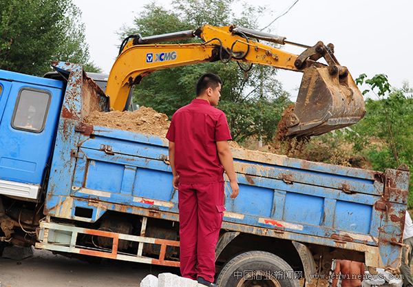 图16:上午11点,太阳很毒,种植户开始休息的时候,他开始指挥施工机械,进行葡萄园区围墙的建设。