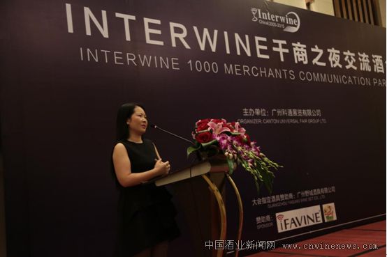酒会一开始,Interwine中国(广州)国际名酒展的主办方广州科通展览有限公司董事总经理贾燕平女士上台致欢迎词。