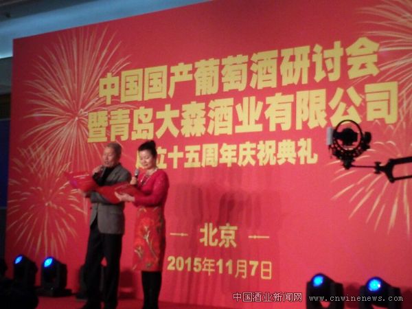 中国国产葡萄酒研讨会暨青岛大森酒业有限公司成立15周年庆典仪式2015年11月7日在北京人民大会堂隆重举行。央视赵保乐、居文沛应邀主持,来自我国葡萄酒界的专家学者以及众多一线影视明星参加了庆典仪式。