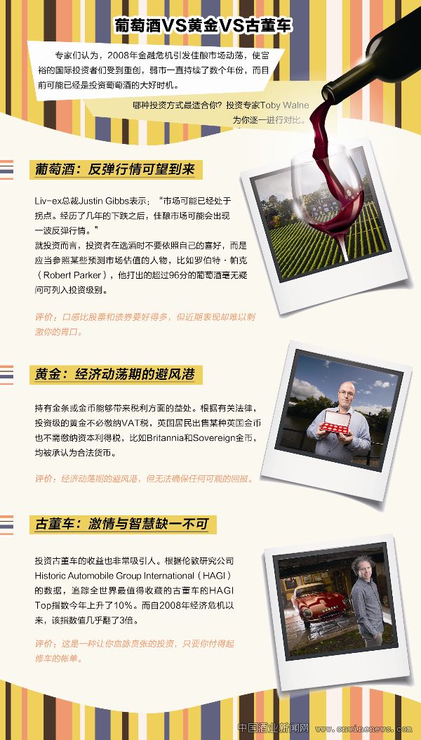 专家们认为,2008年金融危机引发佳酿市场动荡,使富裕的国际投资者们受到重创,弱市一直持续了数个年份,而目前可能已经是投资葡萄酒的大好时机。