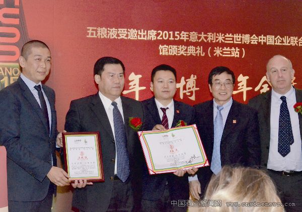 值得一提的是,当地时间11月25日上午,在意大利奥尔维耶托市的Teatro Mancinelli剧院里举行的2015米兰世博会“香醉世博、誉满全球”颁奖典礼上,五粮液刚刚凭借卓越品质和创新精神荣获了“最受奥尔维耶托市喜爱的中国白酒金奖品牌”大奖。同时,刘中国代表五粮液集团向奥尔维耶托市市长Germani Giuseppe及Parrano市市长Mignoz-
