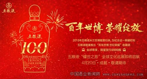 近日,从五粮液方面获悉,五粮液将于4月20日在成都举办“耀世之旅”全球文化巡展首航仪式,并隆重推出五粮液“百年世博世纪荣耀”收藏酒。