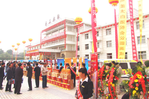 太白酒在延安召开经销商大会的室外情景。