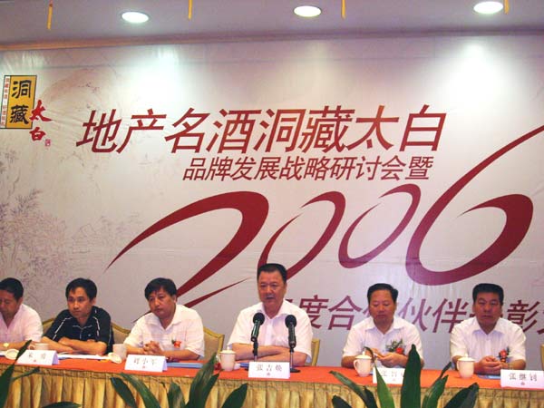 太白董事长张吉焕在洞藏太白品牌发展战略研讨会上讲话。